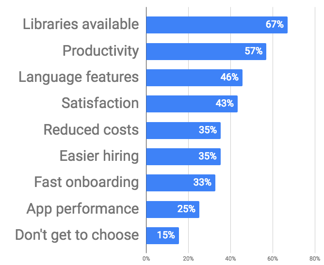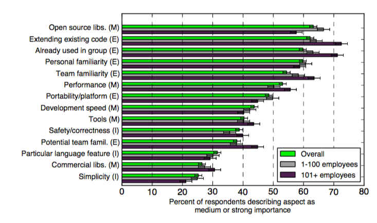 Our own survey data support the conclusions of this study. The most common reason respondents gave for choosing JavaScript was the number of libraries available.